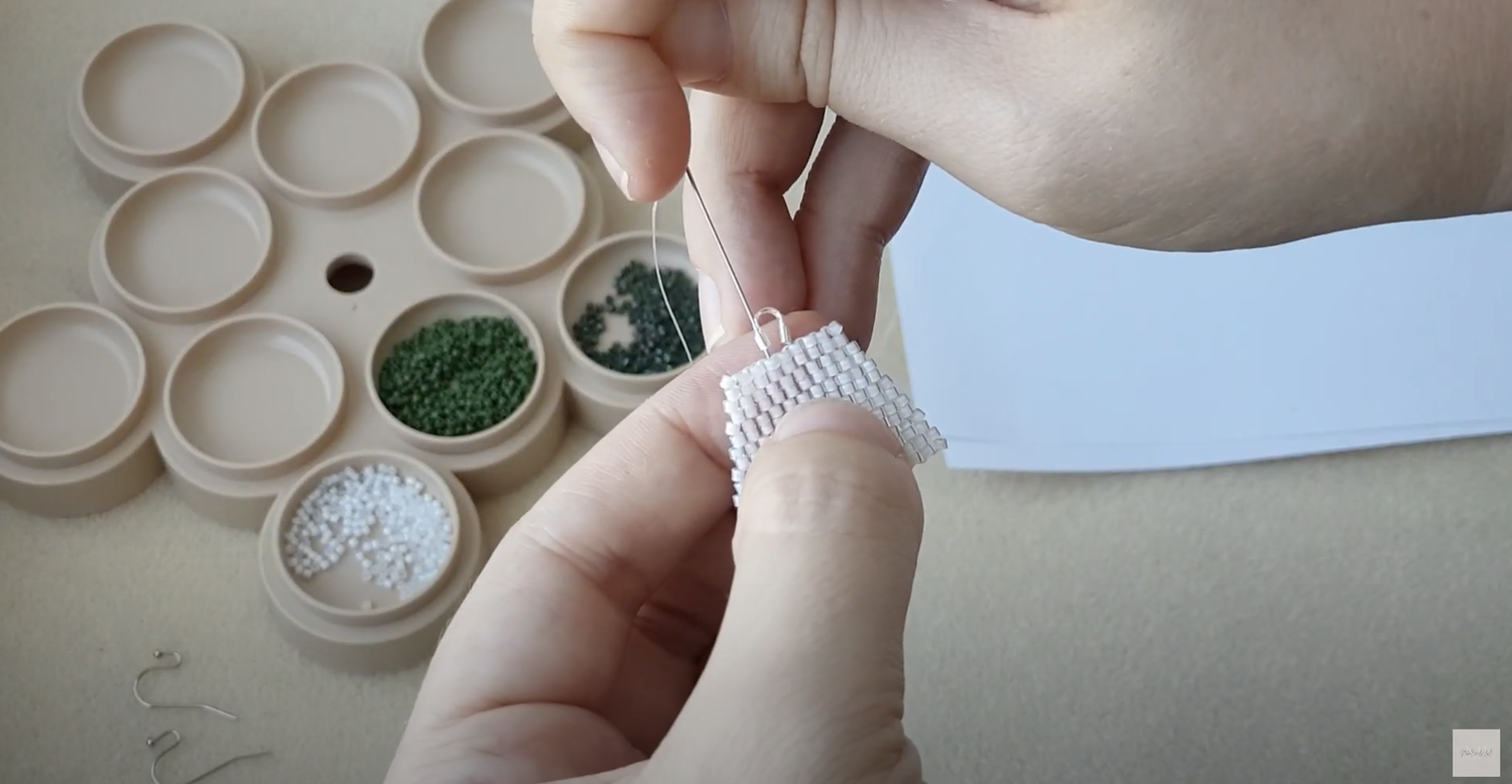 20. Pull the needle UP through the 2 beads of the brick stitch part and then DOWN through the neighbouring ones.
