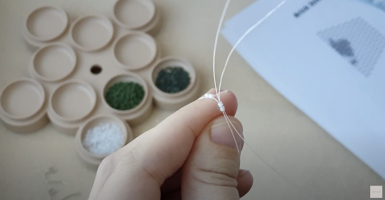 5. You’ll get a nice square made of these 4 beads. Make sure they fit tight to each other.
