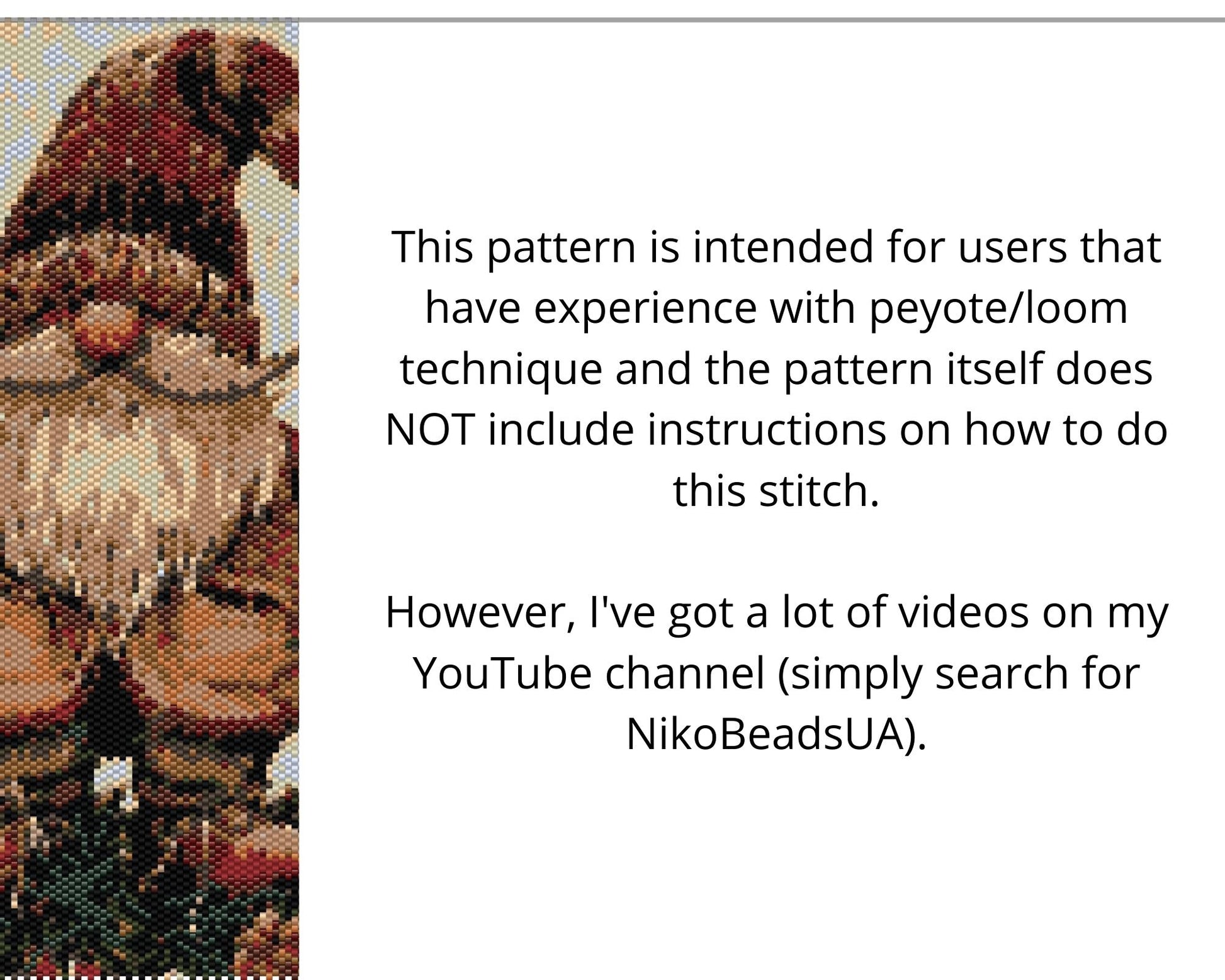This Christmas Gnome pattern offers a soothing, festive design ideal for even count peyote or loom beaded tapestry projects. Perfect for crafters skilled in these techniques, the download includes two A4 PDF files with a color-coded chart, a labeled chart, and a word chart. The included bead legend lists colors, names, and bead quantities, tailored for Miyuki Delica size 11 seed beads. Experienced beaders can customize colors and bead choices. Patterns are for personal use only and cannot be shared or sold. Visit NikoBeadsUA on YouTube for step-by-step bracelet tutorials with similar designs.